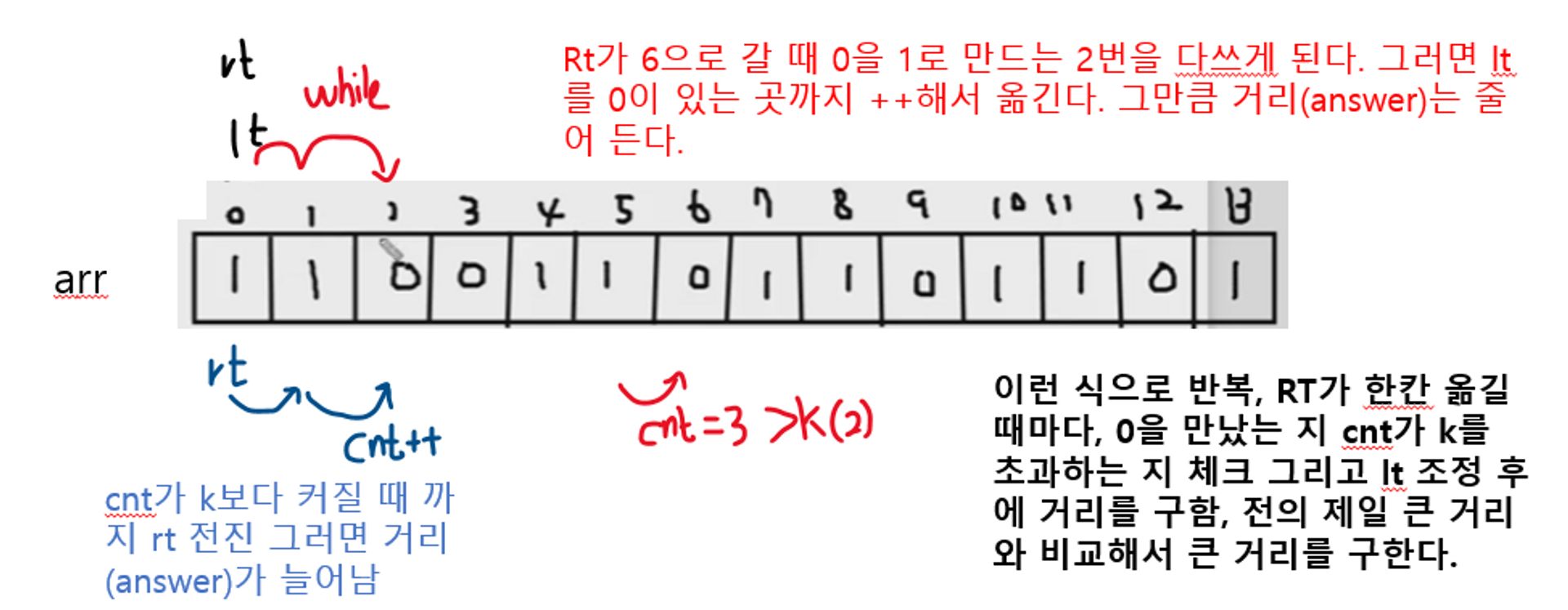 //cnt는 0을 1로 바꾼 수 k보다 커지면,