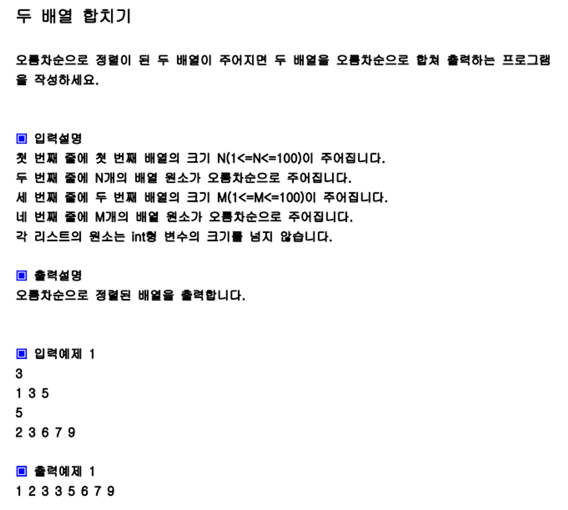위 두배열 합치기 풀이와 같은 방식으로 풀면된다.