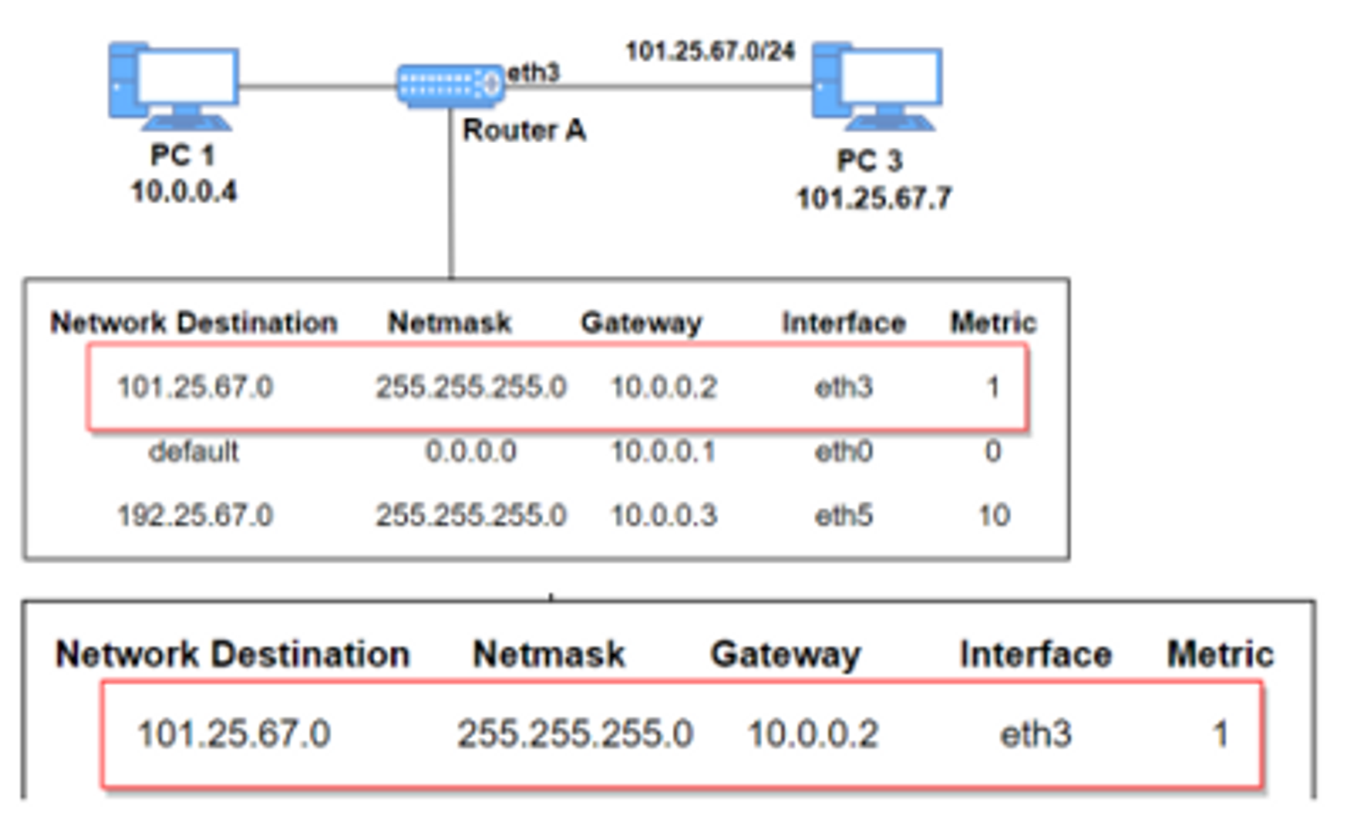 - 인터페이스(interface): 게이트웨이로 가기 위해 거치는 장치이다. 10.0.0.2는 eth3장치를 통해 접근이 가능하다.