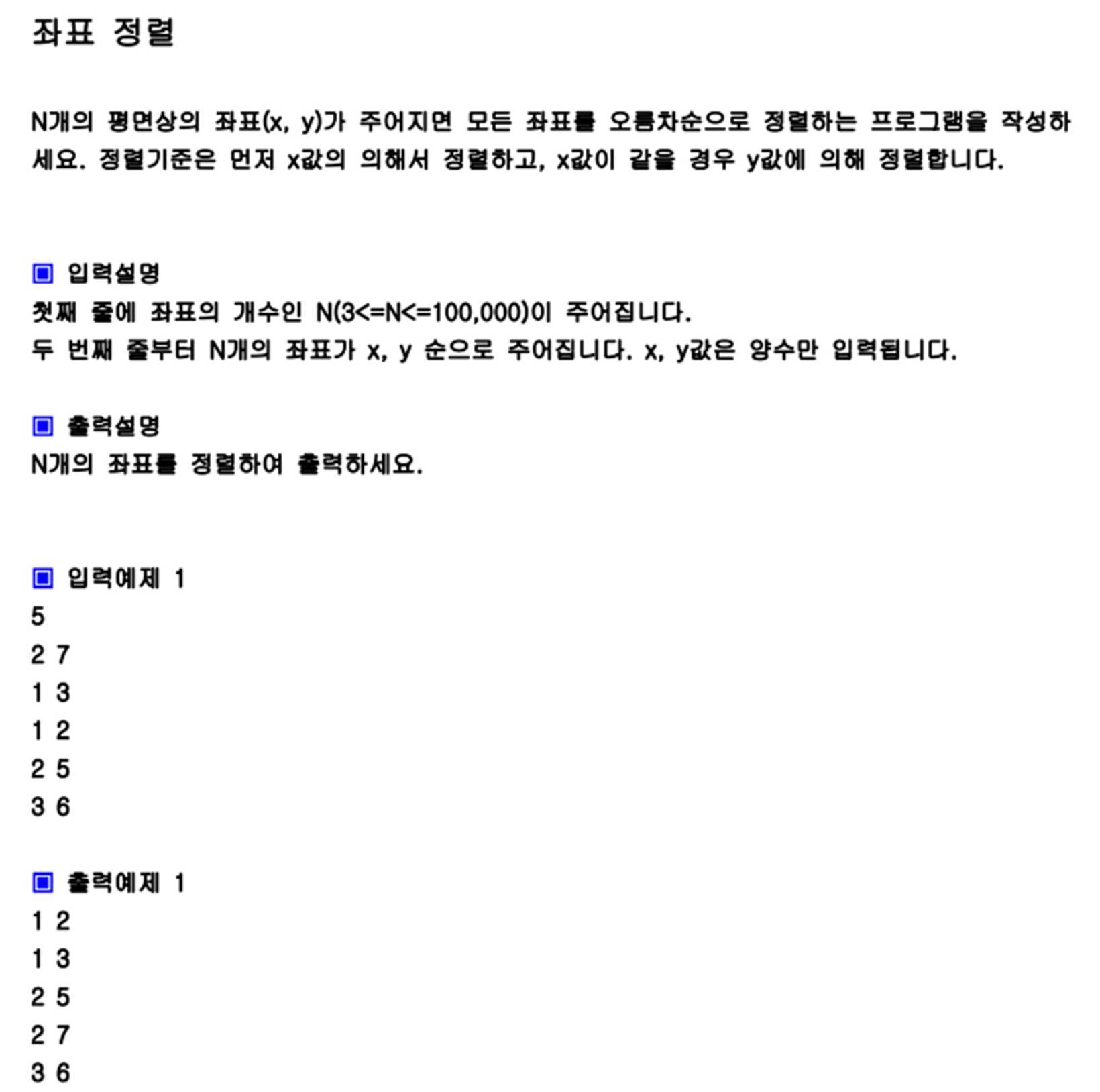 Point Class int x 값을 기준으로 오름차순 정렬한다고 하면 Comparable retrun 값을 this.x-o.x 로 설정해야 한다.