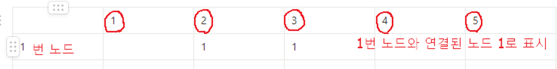 1번 정점과 연결된 곳은 2번과 3번 이라고, 인접 행렬을 보고 그래프 모양을 추측 할 수 있다.