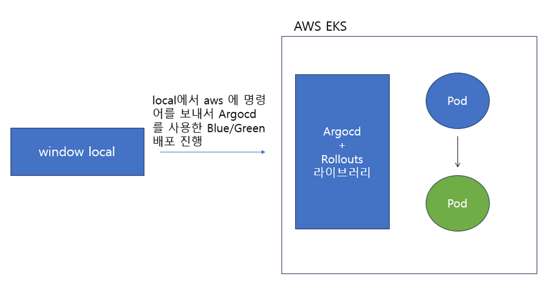 window local에서 aws에 eks kubernetes와 argocd에 명령을 보내서 새로운 Blue/Green 배포를 하는 방법을 알아본다.