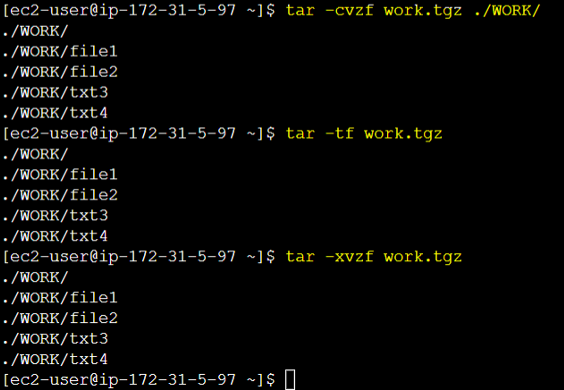 생성(tar -cvzf [타르볼파일명] [디렉토리명/파일명])