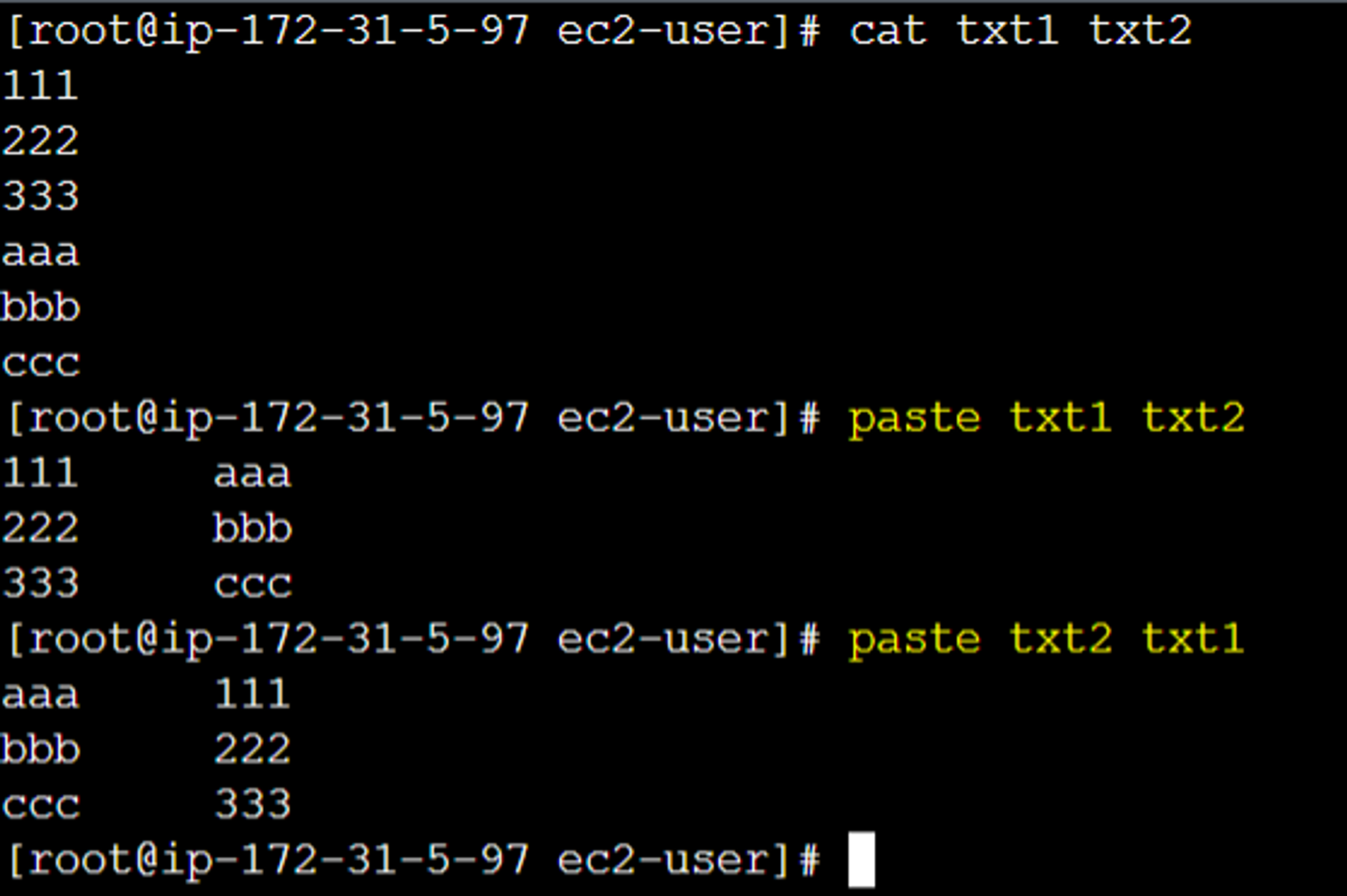 지정한 파일들의 행을 읽어 탭으로 구분하여 병합