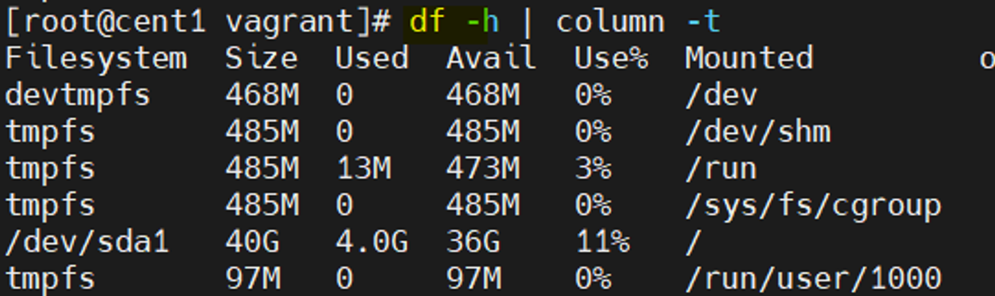 df -h 명령어로 보기 쉽게 디스크 사용량을 파악할 수 있다.
