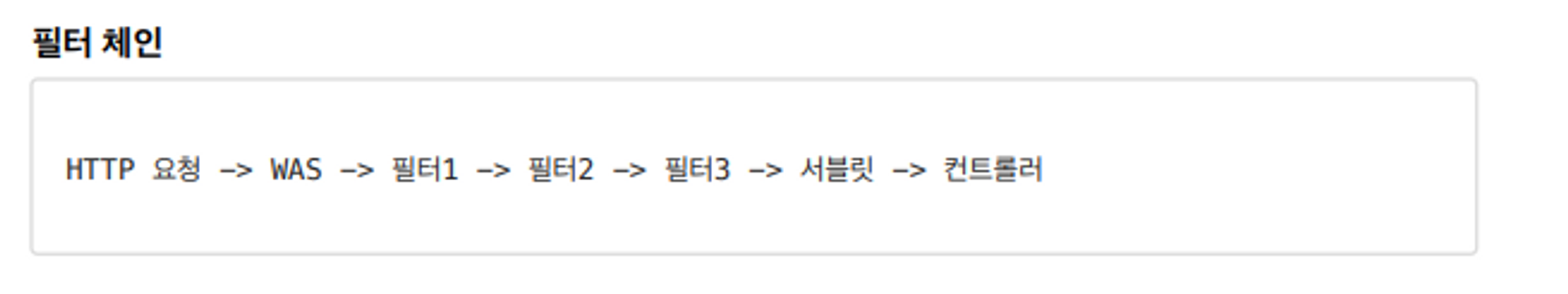 서블릿 필터는 ServletDispathcer 전에 실행되어 모든 HTTP 요청에 적용할 동작을 지정할 수 있다. 필터 체인을 사용하여 서블릿 필터를 여러 개 설정할 수 있다.