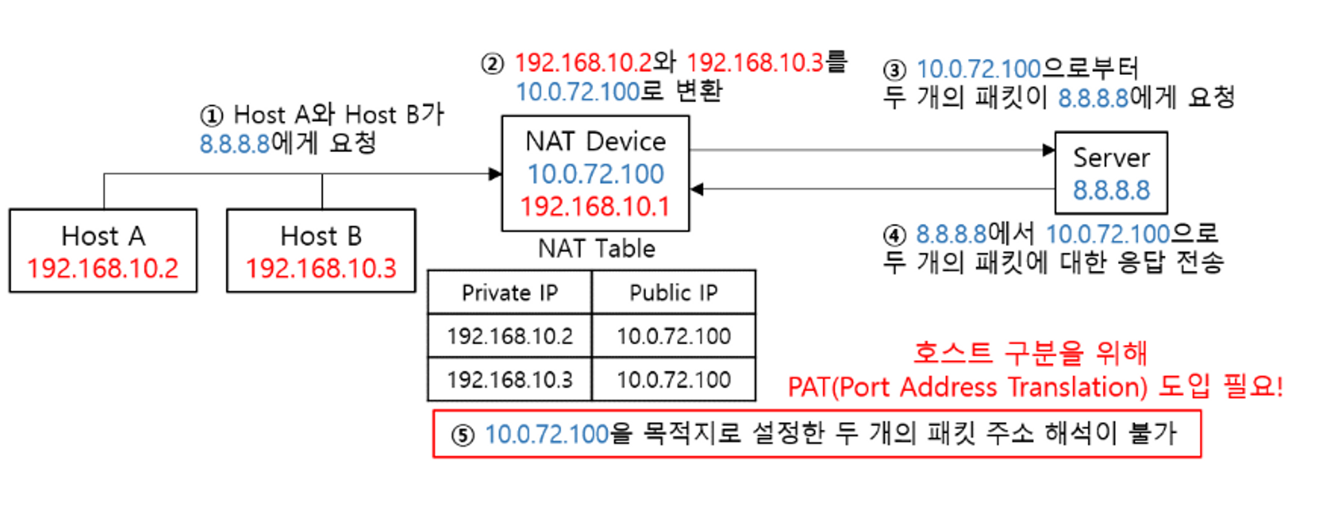 사설 IP에서 외부 인터넷과 연결하려면 반드시, NAT을 거쳐서 공인 IP로 변환되어야 한다. 인터넷 네트워크를 사용하기 위해서는 유니크한 IP주소가 있어야 하고, 그 역할을 공인 IP가 하기 때문이다. 사설 IP만으로는 정확한 주소를 설정할 수 없다.