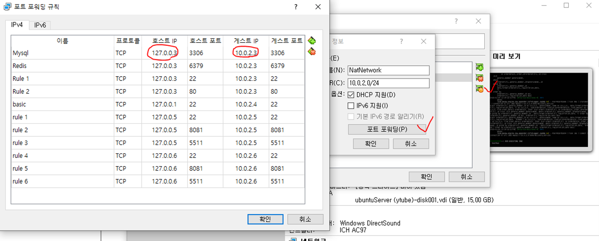 위 설정을 통해 고정 IP 10.0.2.3:3306 의 우분투 서버를 호스트 PC에서 127.0.0.3:3306이라는 IP 주소로 접속할 수 있다.