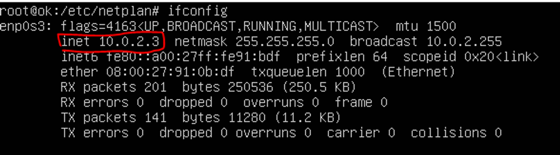 ifconfig 명령어를 통해 IP 정보를 확인해 보면 내가 지정한 고정 IP가 설정된 것을 확인 할 수 있다.