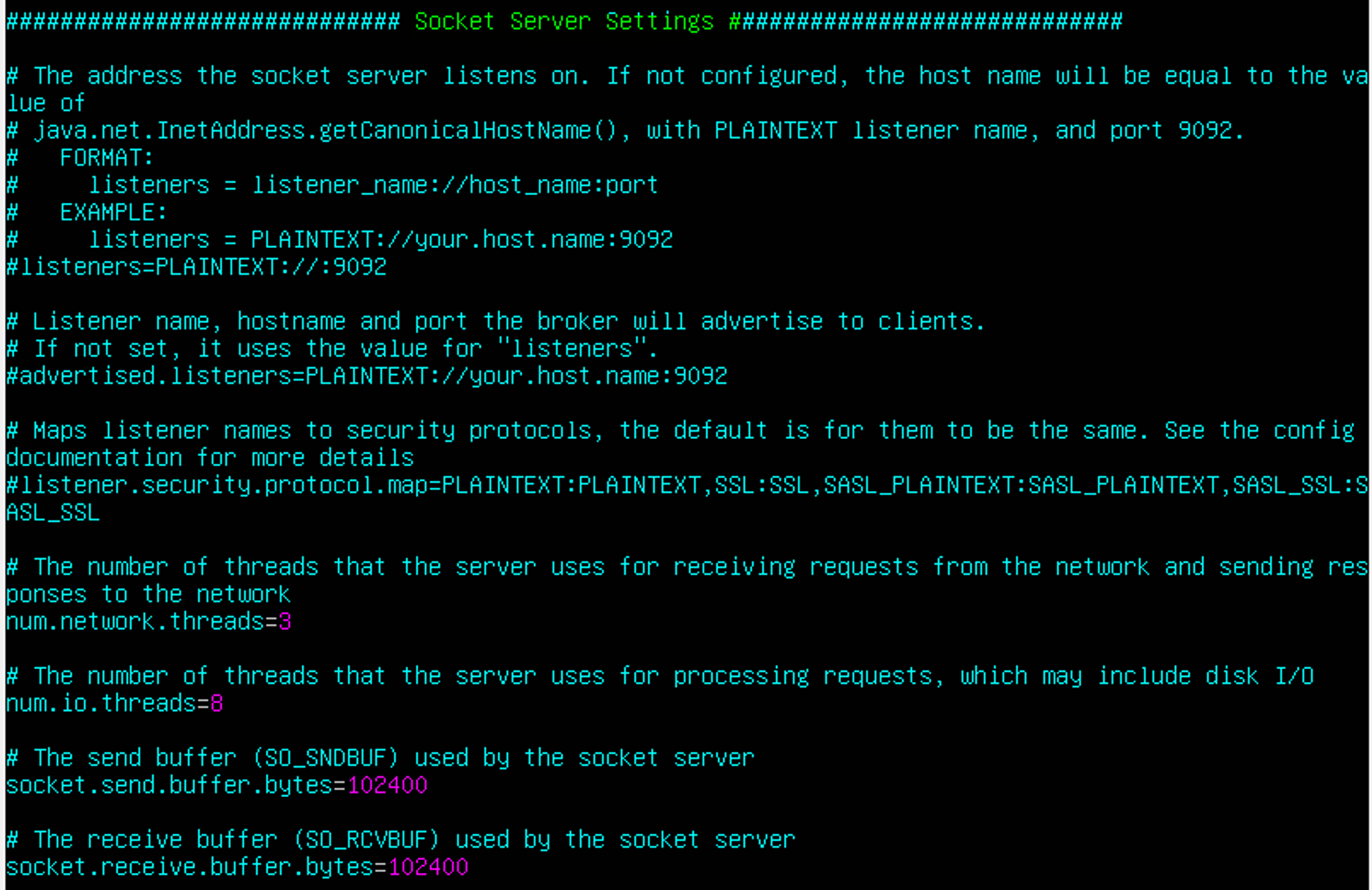 연결을 담당하는 카프카 기본 소켓 서버의 설정을 아래와 같다.