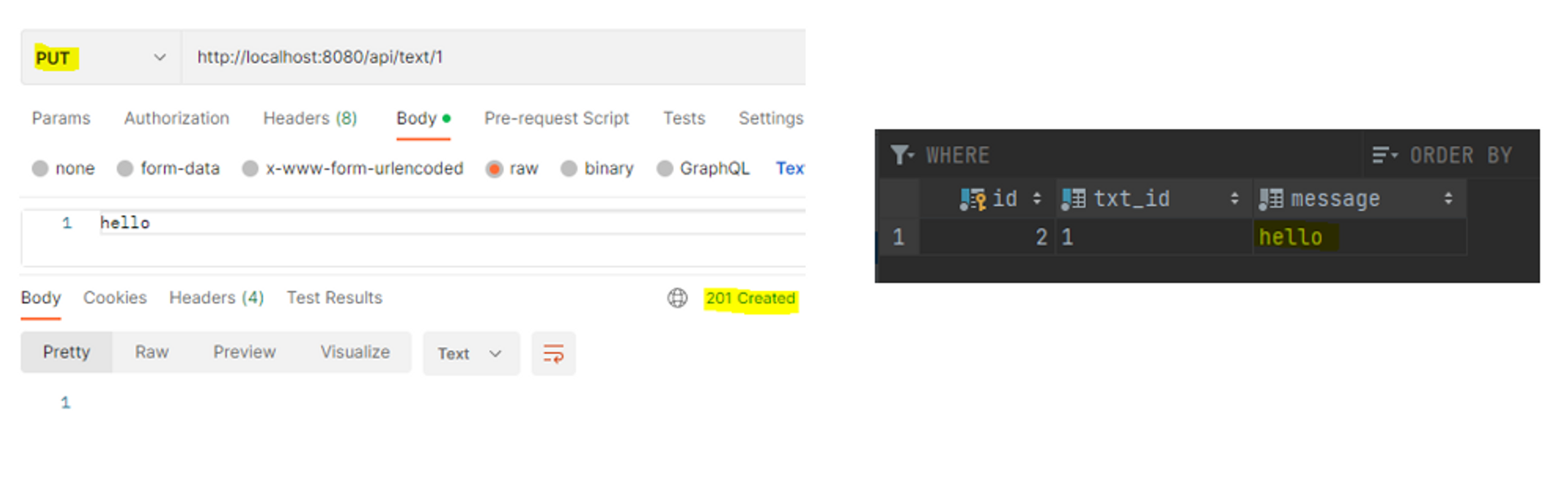 DB에 아이디 별 텍스트를 업데이트 위해 아래 URL로 요청을 하게 되면 리포지토리의 update메소드가 실행된다.