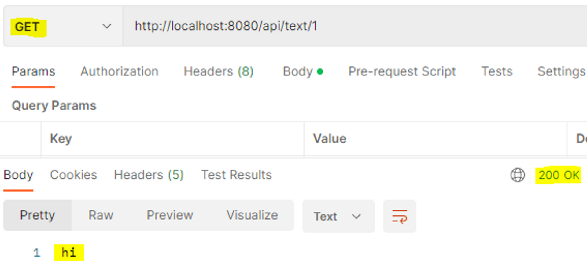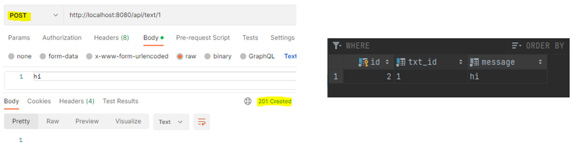 DB에 아이디 별 텍스트를 확인하기 위해 아래 URL로 요청을 하게 되면 리포지토리의 findByTextId 메소드가 실행된다.