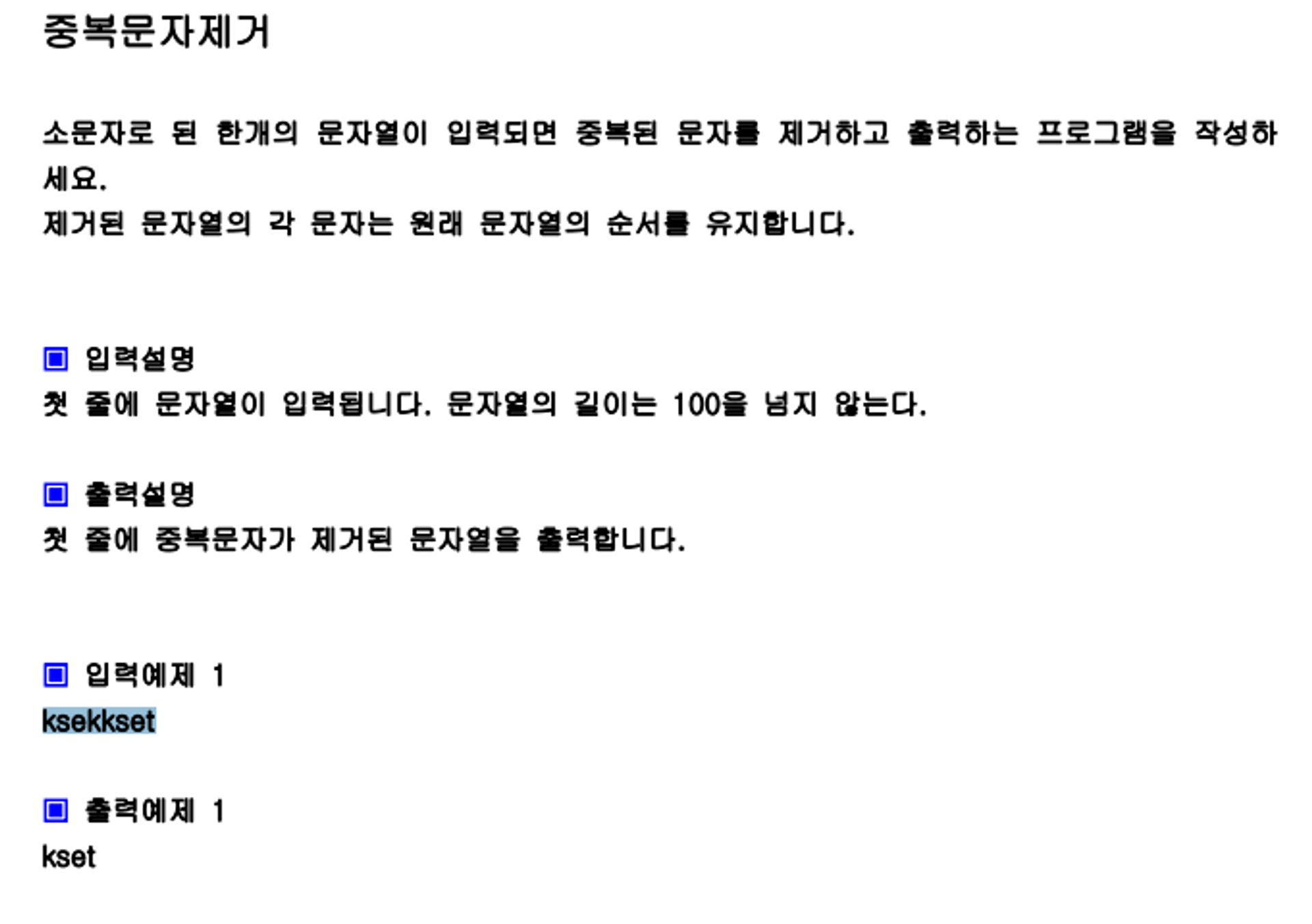 문제 4. 중복 문자 제거 가장 처음 발견되는 문자 발견하기