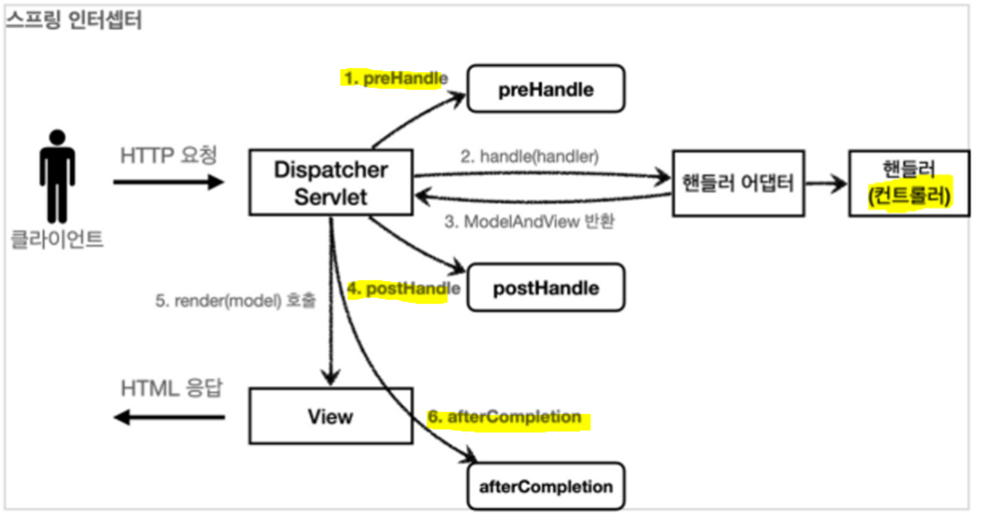false인 경우 나머지 인터셉터는 물론이고, 핸들러 어댑터도 호출되지 않는다. 그림 1번에서 끝이 나버린다.