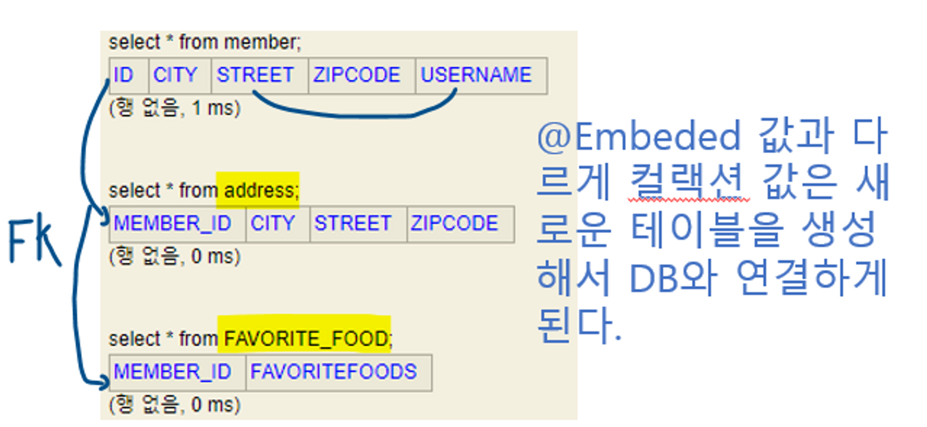 자바에는 리스트같은 컬렉션 구조가 있지만, DB에는 한 컬럼에 한 개의 밸류만 넣을 수 있기 때문에, 리스트 구조를 가지는 것은 불가능하다. 그것을 가능하게 하는 방법을 그림과 코드를 통해서 알아보자.