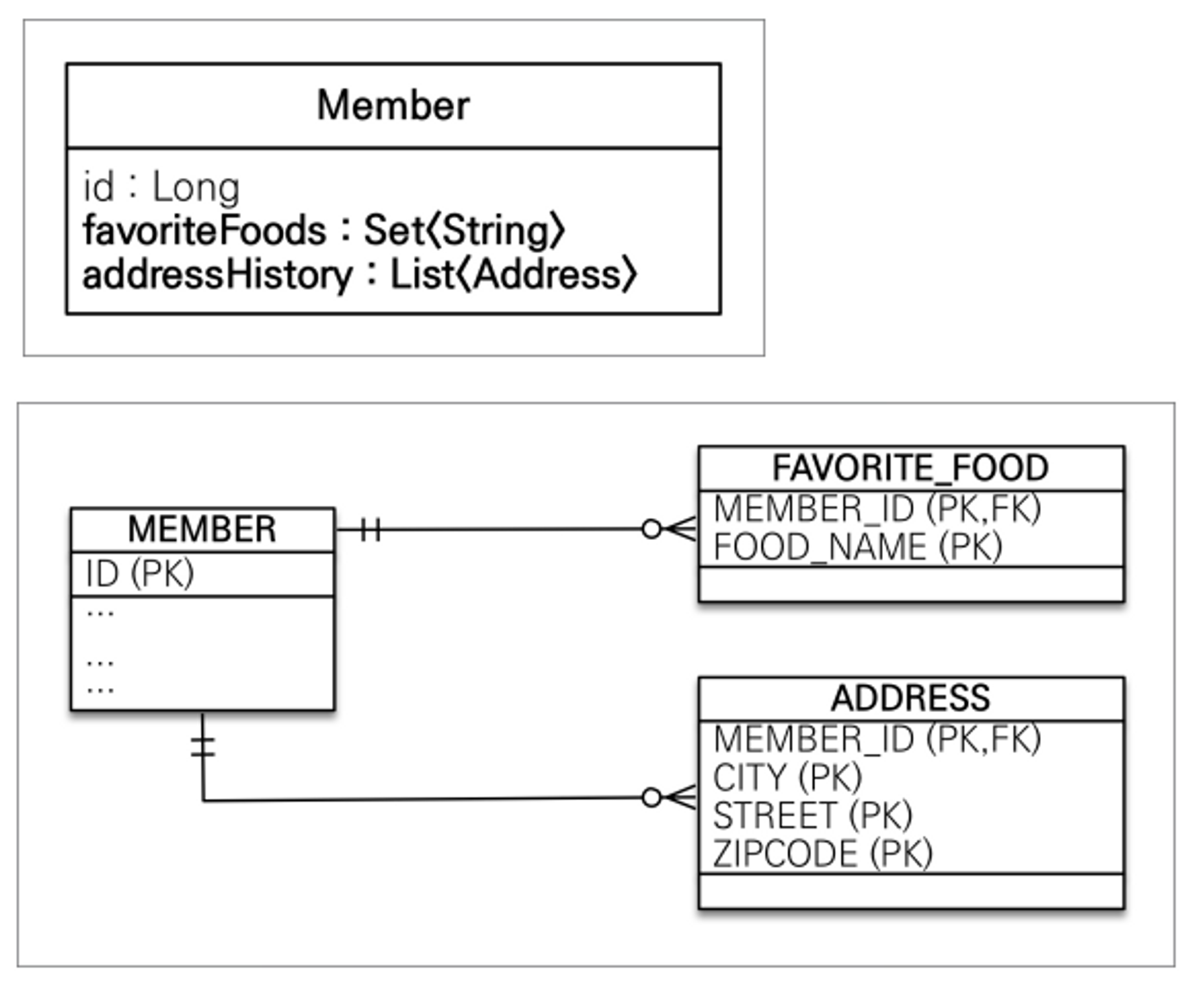 이런 둘의 차이 엔티티의 다양한 값 타입을 → DB 테이블의 컬럼에 잘 맞춰 변경해주는 것이 JPA 값 타입의 역할이다.