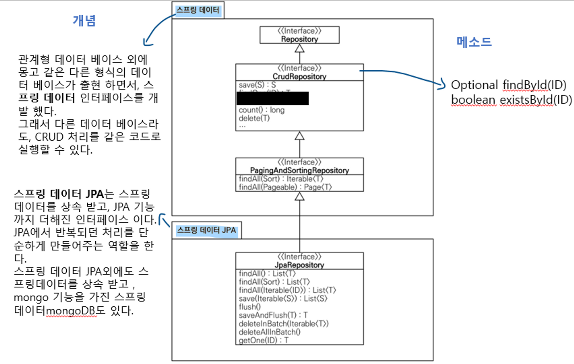 먼저 Spring Data JPA 인터페이스의 구성과 역할에 대해 먼저 이해를 하고,